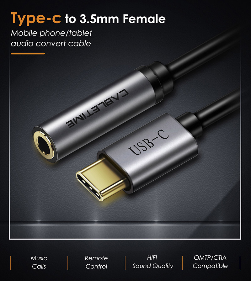 CABLETIME αντάπτορας USB-C σε 3.5mm CT-CMAUDIO, γκρι