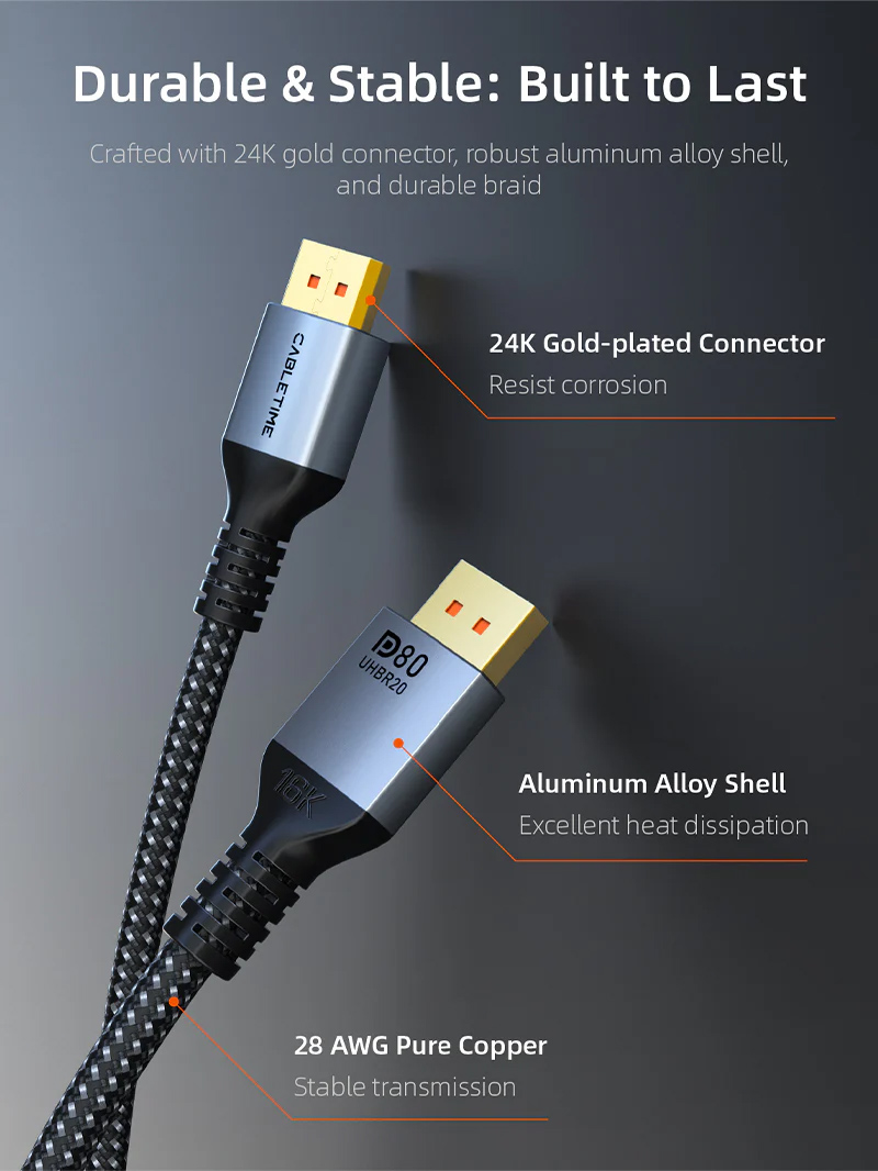 CABLETIME καλώδιο DisplayPort 2.1 CT-DP16K, VESA Certified, 16K/60Hz, 80 Gbps, 2m, μαύρο
