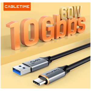 Καλώδιο φόρτισης και μεταφοράς δεδομένων USB-C σε USB της Cabletime. Υποστηρίζει φόρτιση με απόδοση έως 60W και μεταφορά δεδομένων με ταχύτητα έως 10Gbps.