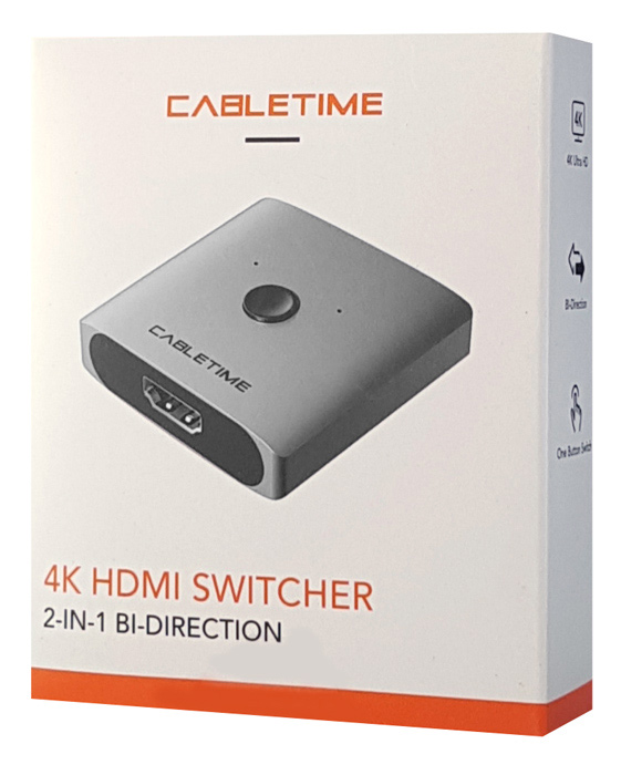Το HDMI switch της Cabletime σας επιτρέπει την εύκολη εναλλαγή μεταξύ 2x συσκευών εισόδου όπως PC ή gaming κονσόλες σε 1x συσκευή εξόδου όπως οθόνες ή τηλεοράσεις.