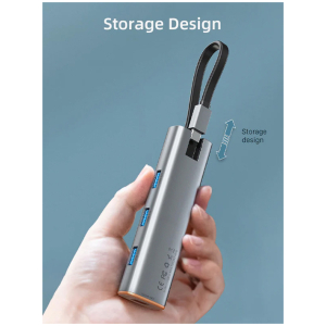 CABLETIME USB hub CT-HUBP4, 4x θυρών, 5Gbps, USB-C σύνδεση, γκρι