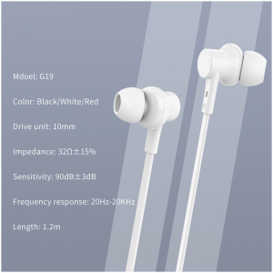 CELEBRAT earphones με μικρόφωνο G19, 3.5mm, 1.2m, μαύρα