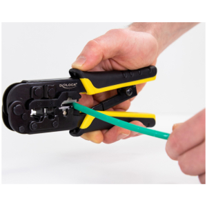 Πολυλειτουργικό εργαλείο της Delock, κατάλληλο για πτύχωση, απογύμνωση και κοπή βυσμάτων 8P (RJ45), 6P (RJ12 / 11) ή 4P. Οι τρεις ενσωματωμένες λεπίδες εξασφαλίζουν την απρόσκοπτη απογύμνωση των καλωδίων και κοπή των strands. Επιπλέον, τα στρογγυλά καλώδια διαμέτρου έως 5,5mm και τα επίπεδα καλώδια πλάτους έως 12,7mm μπορούν να αφαιρεθούν ή να κοπούν πλήρως.