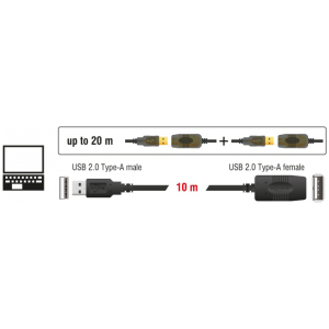 DELOCK καλώδιο USB 2.0 αρσενικό σε θηλυκό 82446, active, 10m, μαύρο