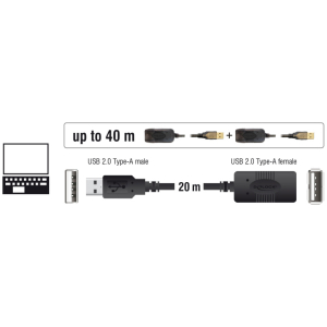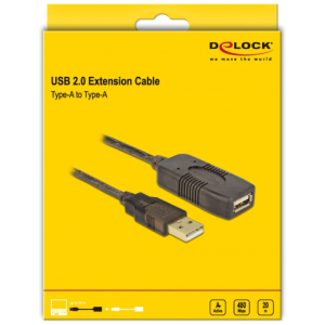 DELOCK καλώδιο USB 2.0 αρσενικό σε θηλυκό 82690, active, 20m, μαύρο