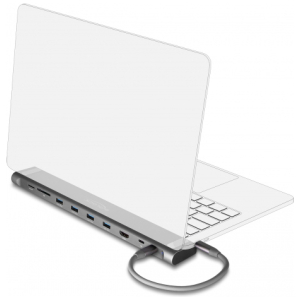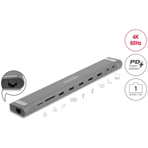 DELOCK docking station 87895, 9 θυρών, βάση laptop, 85W PD, 4K, γκρι