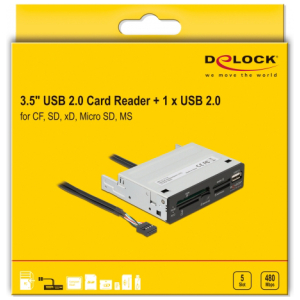 DELOCK USB 9-pin card reader 91708, CF/SD/XD/MS/Micro SD/USB, 3.5" bay