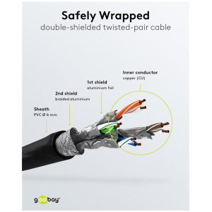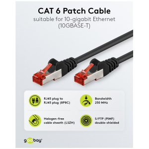 GOOBAY καλώδιο δικτύου 68695, CAT 6 S/FTP, copper, 250MHz, 15m, μαύρο