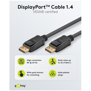 GOOBAY καλώδιο DisplayPort 74778, VESA Certified, 8K/60Hz, 32.4 Gbps, 2m, μαύρο