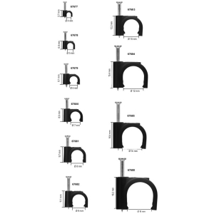 Ρόκα ιδανικά για την στήριξη καλωδίων σε τοίχους, κουφώματα θυρών και γωνίες. Είναι κατασκευασμένα από υψηλής ποιότητας πλαστικό με γαλβανισμένα ατσάλινα καρφιά. Μπορούν να χρησιμοποιηθούν τόσο σε εσωτερικούς όσο και εξωτερικούς χώρους. Η συσκευασία περιλαμβάνει 100 τεμάχια, τοποθετημένα μέσα σε βολικό πλαστικό κουτί αποθήκευσης.