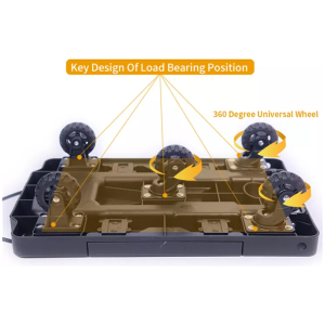 Εξοπλίζεται με 5 αθόρυβα λαστιχένια ροδάκια στην βάση του, τα οποία είναι πλήρως περιστρεφόμενα, επιτρέποντας την εύκολη μετακίνηση του καροτσιού προς κάθε κατεύθυνση.