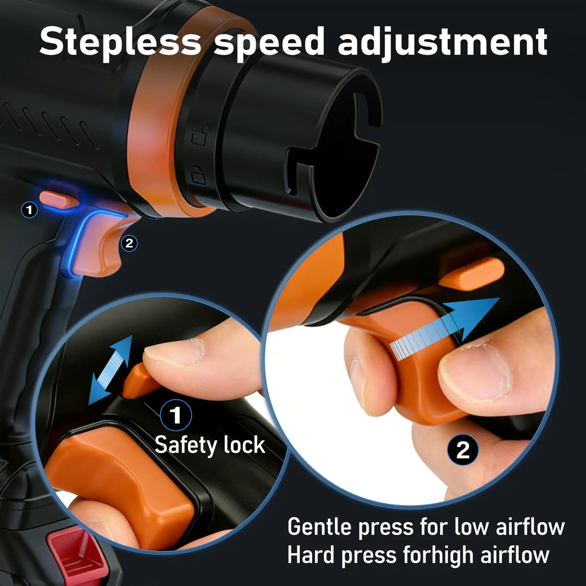 Ηλεκτρικό air duster με ισχυρό Brushless κινητήρα της Kinzir, κατάλληλο για απομάκρυνση φύλλων, νερού ή χιονιού αλλά και σκόνης από αξεσουάρ και οικιακά αντικείμενα.