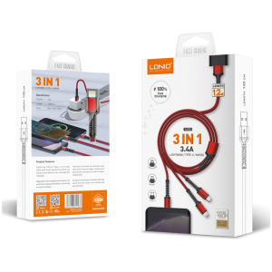 LDNIO καλώδιο USB σε USB-C/Lightning/Micro USB LC93, 3.4A, 1.2m, γκρι
