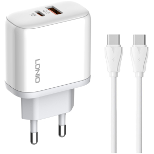 LDNIO φορτιστής τοίχου A2526C με καλώδιο, USB & USB-C, 45W PD, λευκός