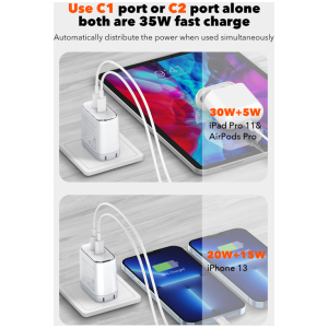 Διαθέτει 2x θύρες εξόδου USB-C που υποστηρίζουν φόρτιση με μέγιστη συνολική απόδοση 35W.