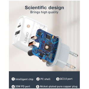 Υψηλής απόδοσης φορτιστής τοίχου της LDNIO, κατασκευασμένος από ανθεκτικό υλικό και συμβατός με συσκευές που φορτίζουν μέσω USB θύρας.