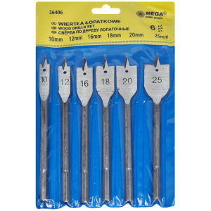 MEGA σετ τρυπάνια ξύλου φτερού 26406, 10-25mm, 6τμχ