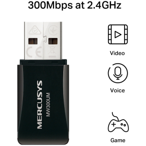 Ο ασύρματος USB αντάπτορας δικτύου MW300UM της MERCUSYS σας επιτρέπει να συνδέσετε ένα σταθερό ή φορητό υπολογιστή, σε ασύρματο δίκτυο WiFi, μέσω ελεύθερης θύρας USB.