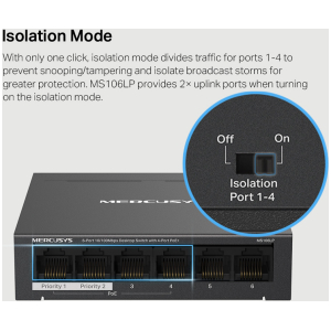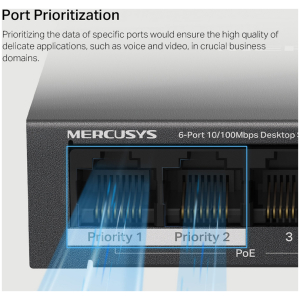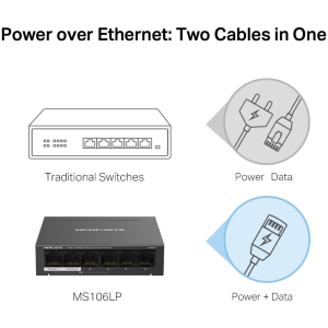 MERCUSYS Desktop Switch MS106LP, 6x 10/100 Mbps, PoE+, Ver. 1.0