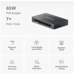 -High Power PoE+: υποστηρίζει PoE Power έως 30W για κάθε PoE θύρα και 65W για όλες τις PoE θύρες