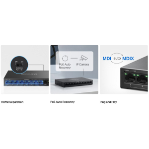 PoE Ports: RJ45, Standard: Compliant with 802.3 af/at Powered Devices, PoE Ports: Port 1- Port 8, PoE Power Budget: 115 W