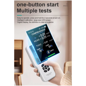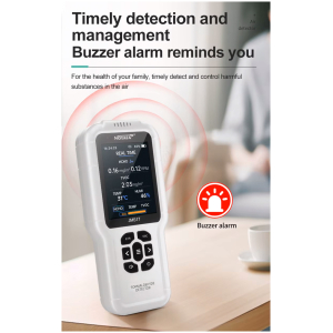 -Real-time measurement: HCHO (mg/m3 PPM), TVOC (mg/m3), temperature (°C) and humidity (%)