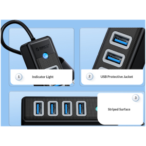 Αυτό το hub της ORICO μπορεί να συνδεθεί με το laptop ή το desktop σας μέσω θύρας USB-C και να επεκτείνει τις θύρες του με 4x USB θύρες. Διαφορετικές συσκευές USB, όπως εξωτερικοί σκληροί δίσκοι, card readers, ποντίκια κλπ. μπορούν να συνδεθούν μέσω του hub.