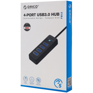 ORICO USB hub PW4U-C3, 4x θυρών, USB 3.0, 5Gbps, USB-C σύνδεση, μαύρο
