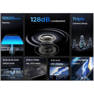 OUKITEL smartphone WP36, 6.52", 8/128GB, IP68/IP69K, 10600mAh, μαύρο