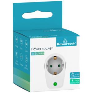 POWERTECH αντάπτορας ρεύματος PT-996, 1 θέση schuko, 16A, 3680W, λευκός