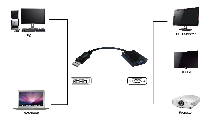 Converter για σύνδεση συσκευών με DisplayPort έξοδο σε οθόνες και προτζέκτορες με VGA είσοδο.