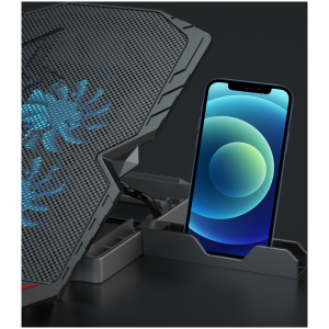 Εξοπλίζεται με LCD οθόνη και πλήκτρα για την ρύθμιση ταχύτητας των ανεμιστήρων και διαθέτει stand για το κινητό σας τηλέφωνο.