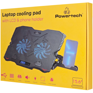 POWERTECH βάση & ψύξη laptop PT-1346, έως 15.6", 2x 125mm LED fan, μαύρη