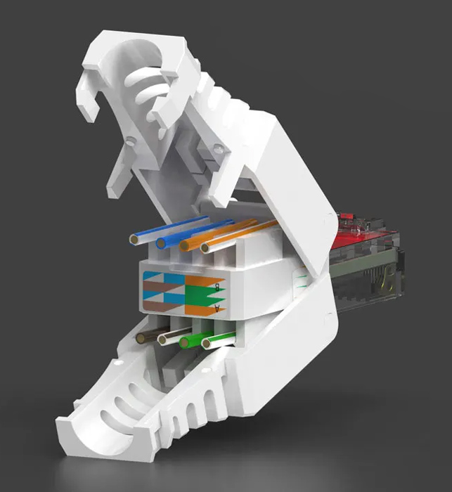 Βύσμα RJ45 της Powertech για εύκολη εγκατάσταση σε καλώδια δικτύου, χωρίς την χρήση εργαλείων.