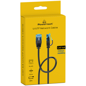 POWERTECH καλώδιο δικτύου PTR-0143 Cat 6a U/UTP, copper, slim, 2m, μαύρο