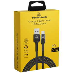 POWERTECH καλώδιο USB σε USB-C PTR-0128, PD 60W, copper, 1m, μαύρο