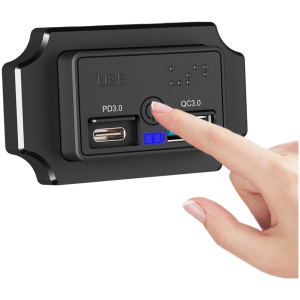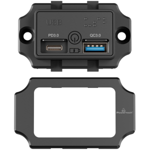 Πρίζα USB της Powertech, κατάλληλη για τοποθέτηση σε σκάφη και οχήματα όπως τρακτέρ κ.α. Εξοπλίζεται με θύρες φόρτισης USB και USB-C για την φόρτιση συσκευών που φορτίζουν μέσω θύρας USB.
