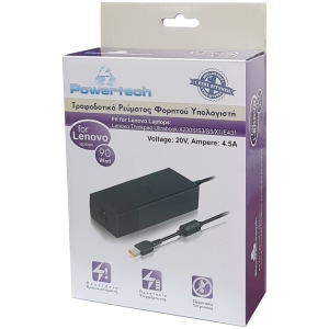 POWERTECH τροφοδοτικό laptop PT-118 για LENOVO, 90 watt, 20V – 4.5A