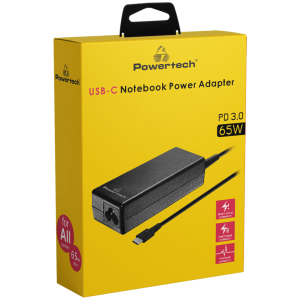 POWERTECH φορτιστής laptop PT-1319, USB-C PD 3.0, universal, 65W, μαύρος