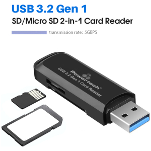 POWERTECH card reader PT-1112 για SD & micro SD, USB 3.2, 5Gbps, μαύρο