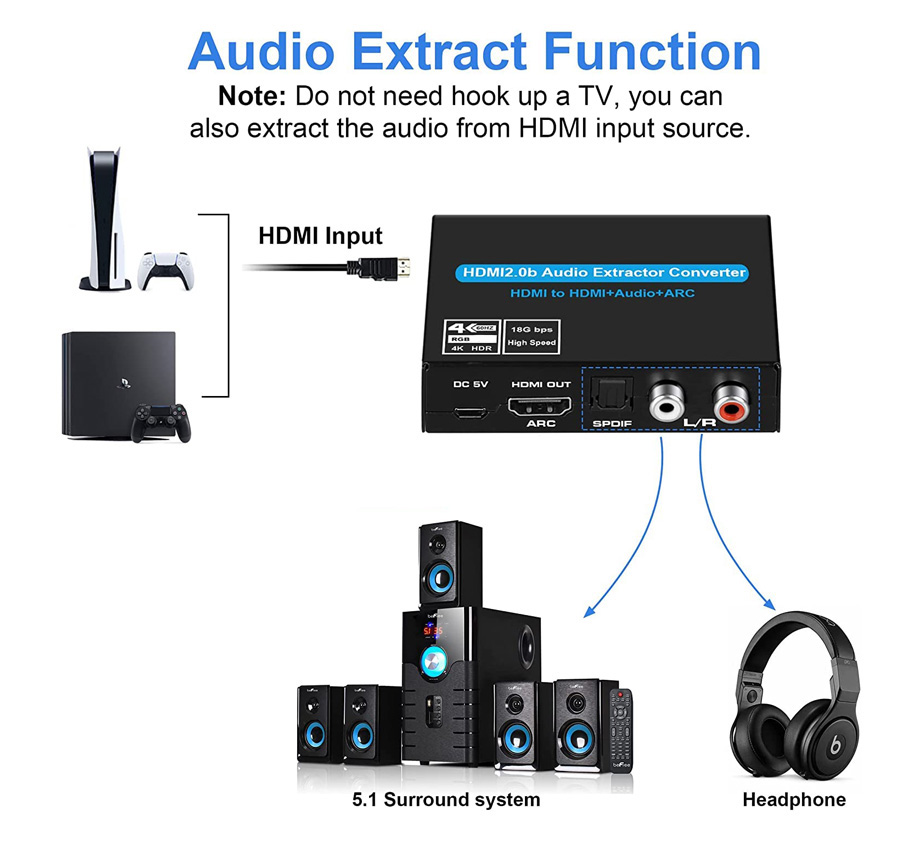Ο μετατροπέας CAB-H154, επιτρέπει τον διαχωρισμό του ήχου από το HDMI σε 3.5mm & 2x RCA για την σύνδεση σε εξοπλισμό ήχου. Υποστηρίζει ανάλυση 4K, 3D video format, deep color και 8:8:8 chroma colours. Εξοπλίζεται με διακόπτη λειτουργία ARC και διακόπτη επιλογής καναλιού TV, 2.0, 5.1.