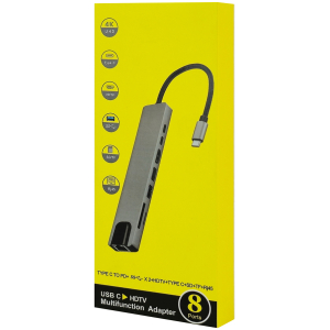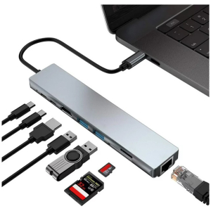 POWERTECH docking station PT-1536, 8 θυρών, USB-C σύνδεση, 87W PD, 100Mbps, γκρι