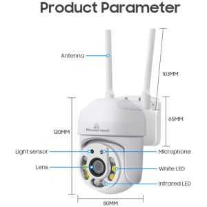 Η smart κάμερα ασφαλείας της Powertech, καταγράφει κάθε κίνηση σε καθαρή, υψηλής ευκρίνειας ανάλυση, με έγχρωμη εικόνα, ακόμη και κατά την διάρκεια της νύχτας. Διαθέτει 2 φακό 3.6mm με αισθητήρα ανάλυσης 2MP και υποστηρίζει auto tracking αλλά και PTZ λειτουργία.