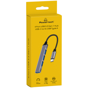 Το hub της Powertech συνδέεται στον υπολογιστή σας μέσω ελεύθερης θύρας USB-C, επεκτείνοντας τις θύρες του με 1x USB 3.2 Gen 1 και 3x USB 2.0 Type A θύρες.