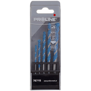 Σετ από την Proline που αποτελείται από 5 τρυπάνια, κατάλληλα για χρήση σε διαφορετικά υλικά, όπως σίδηρο, ξύλο και μπετόν.