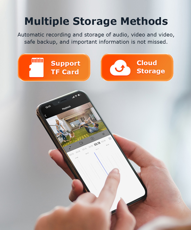 Η αποθήκευση των αρχείων γίνεται απευθείας σε κάρτα μνήμης micro SD (δεν συμπεριλαμβάνεται) ή σε λογαριασμό στο cloud.