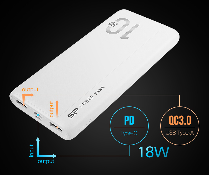 Με το power bank QP15 της Silicon Power το άγχος της εξαντλημένης μπαταρίας θα είναι παρελθόν. Η μπαταρία μεγάλης χωρητικότητας 10.000mAh, είναι σε θέση να φορτίσει το smartphone σας ή όποια άλλη συμβατή συσκευή, 2-4 φορές με μια μόνο φόρτιση. Διαθέτει 2 θύρες εξόδου USB και 1 θύρα εξόδου/εισόδου USB Type-C (PD) με συνολική απόδοση έως 3A. Επιπλέον, εξοπλίζεται με 4 LEDS indicators για την ένδειξη της μπαταρίας και φορτίζει μέσω θύρας USB Type-C ή Micro USB.