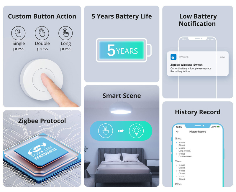 SONOFF smart διακόπτης SNZB-01P, μπαταρίας, Zigbee