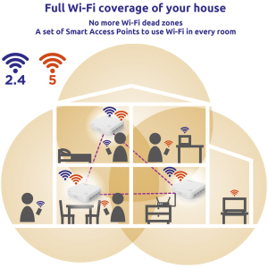 -Easy MESH Support: Automatically Organized Network, Auto Configuration, Seamless Roaming, Auto MESH Routing, Auto Healing (Redundancy and Fail-over), Intelligent roaming (Dynamic management of clients and clients frequency bands), Multiple access point architecture (up to 6x ATRIA Mesh Extender 1200), Only one WiFi name all over the house (configuration sharing)