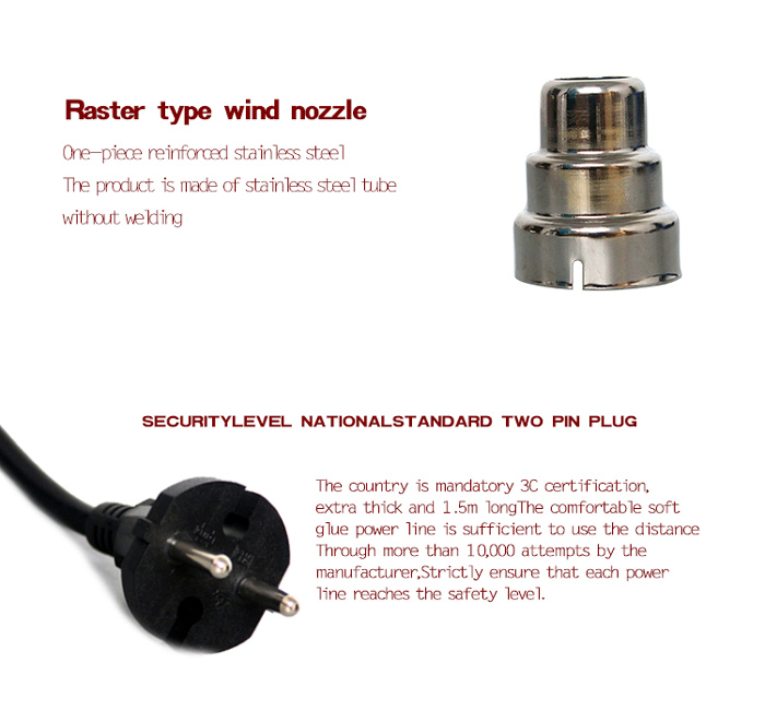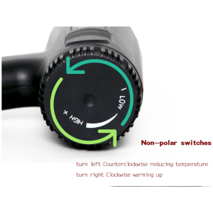 Πιστόλι θερμού αέρα με 2 ταχύτητες, με ρυθμιζόμενη θερμοκρασία 50-400 °C για την χαμηλή ταχύτητα και 50-600 °C για την υψηλή ταχύτητα.